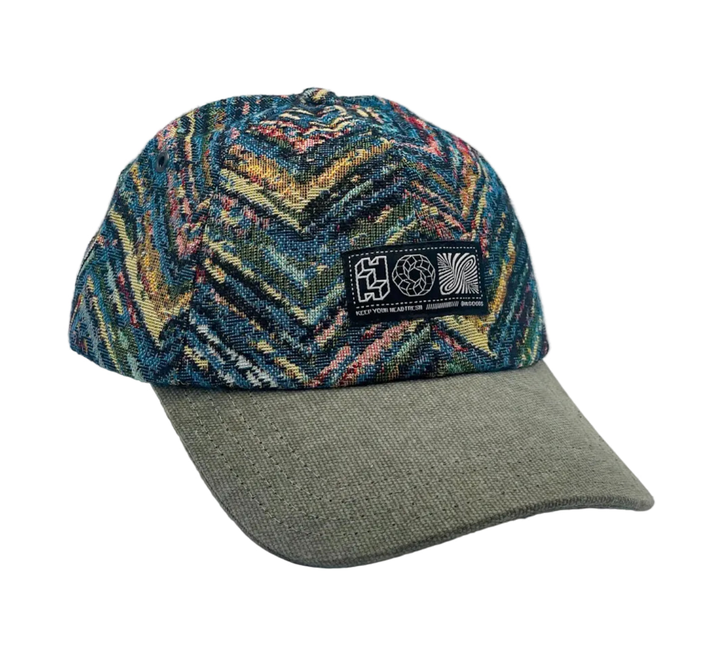 For this cap, we used fabric sourced in Bratislava, Slovakia, giving each cap its own story. As every piece is cut from a different section of the fabric, slight variations from the pictures are natural and part of the design.