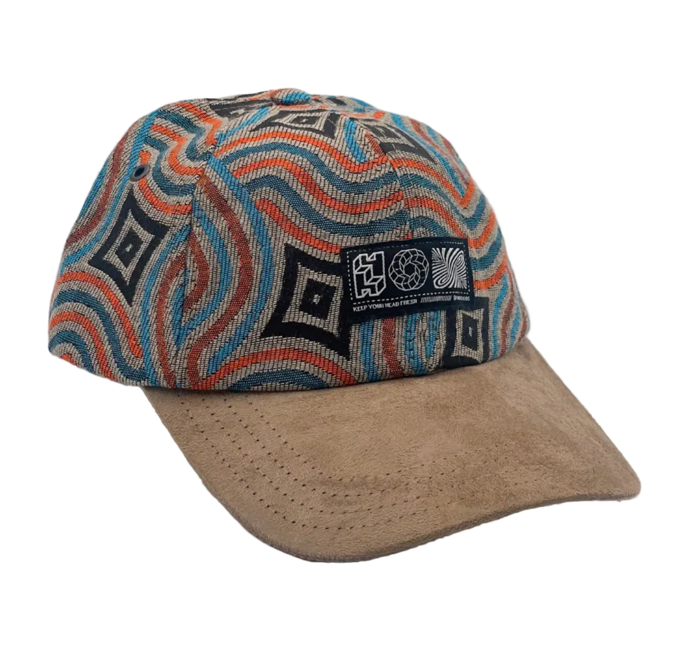 For this cap, we used fabric sourced in Rabat, Morocco, giving each cap its own story. As every piece is cut from a different section of the fabric, slight variations from the pictures are natural and part of the design.